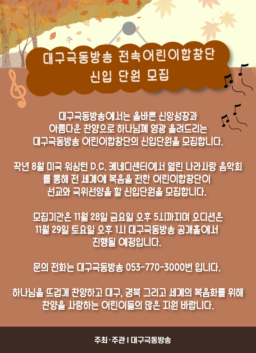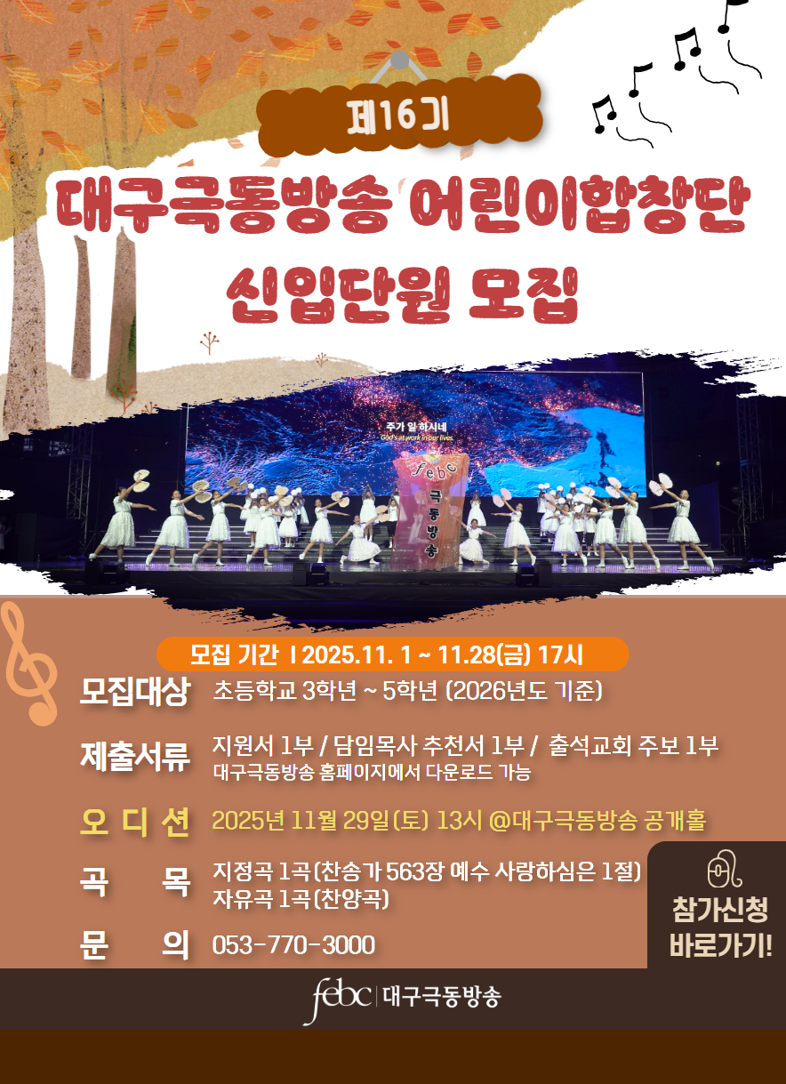 제16기 대구극동방송 어린이합창단 신입단원 모집