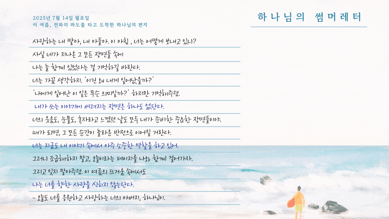 [사랑의뜰안] 7월 14일 월요일, 하나님의 썸머레터