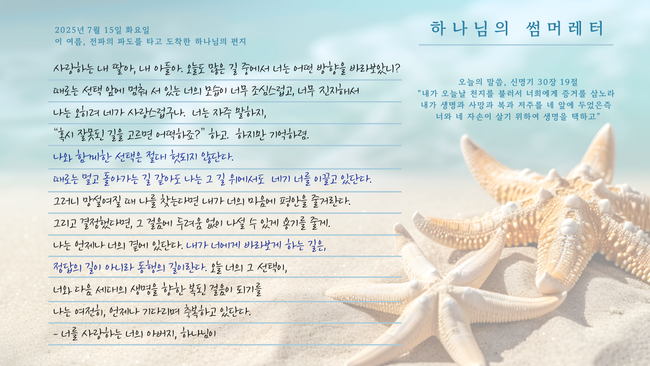 [사랑의뜰안] 7월 15일 화요일, 하나님의 썸머레터