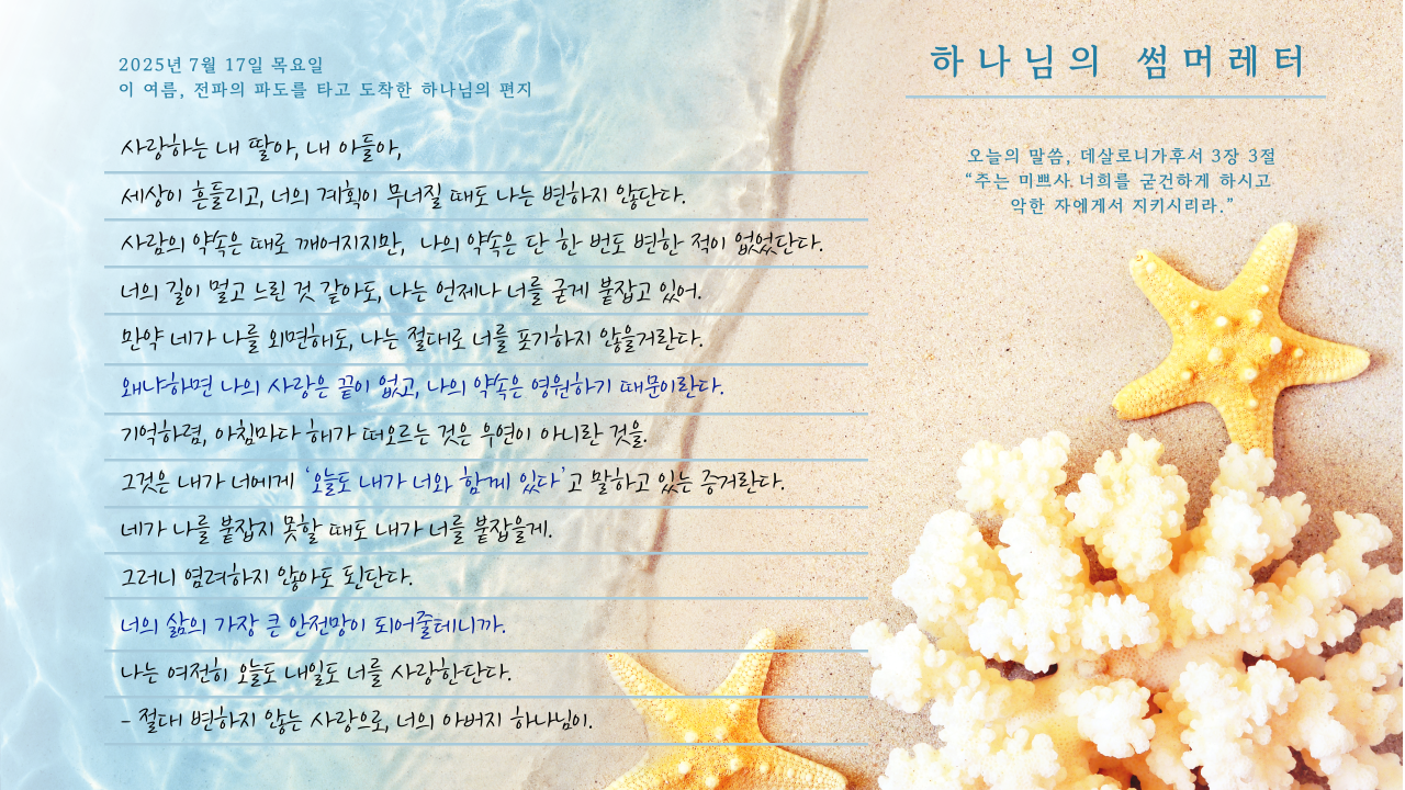 [사랑의뜰안] 7월 17일 목요일, 하나님의 썸머레터
