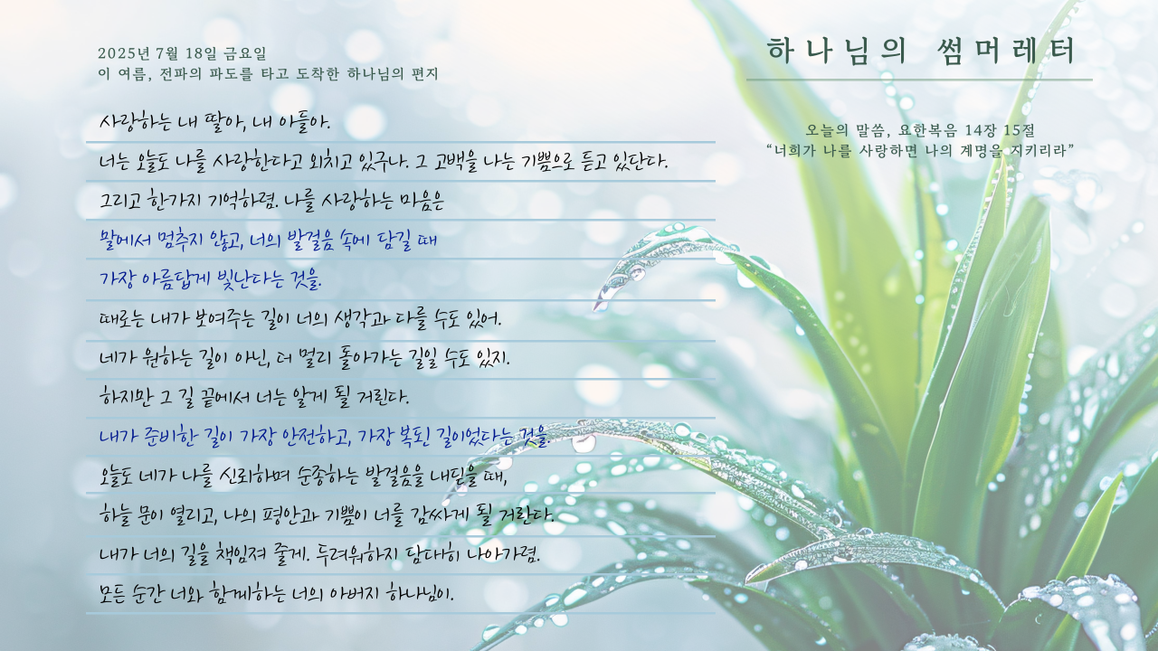 [사랑의뜰안] 7월 18일 금요일, 하나님의 썸머레터