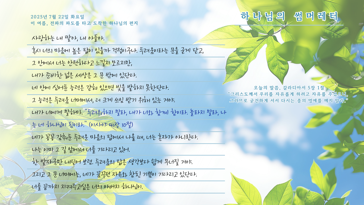 [사랑의뜰안] 7월 22일 화요일, 하나님의 썸머레터