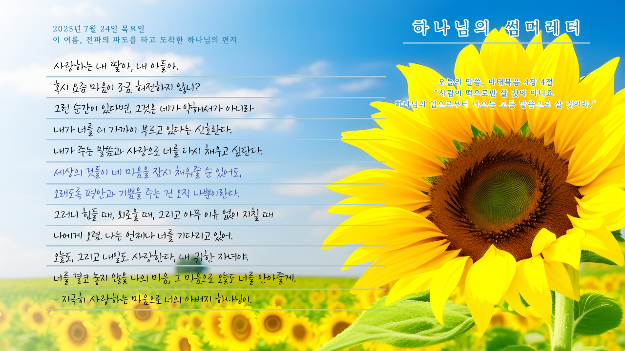[사랑의뜰안] 7월 24일 목요일, 하나님의 썸머레터