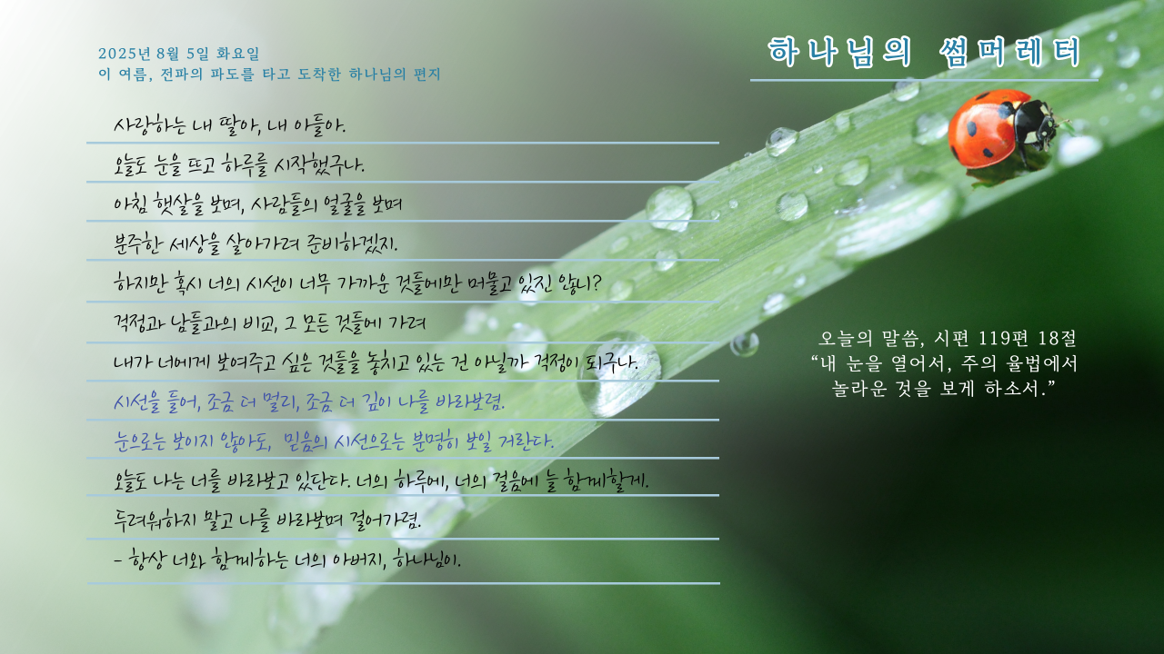 [사랑의뜰안] 8월 5일 화요일, 하나님의 썸머레터