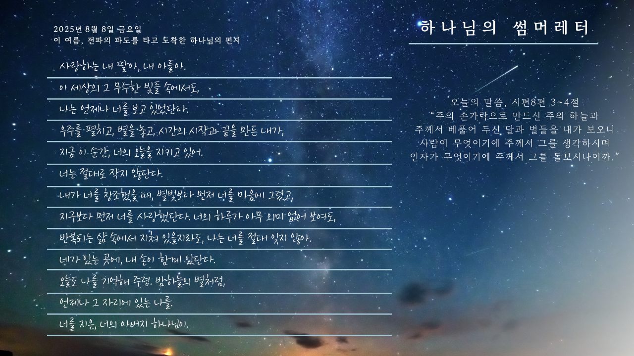 [사랑의뜰안] 8월 8일 금요일, 하나님의 썸머레터