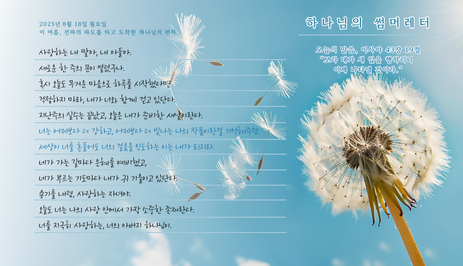 [사랑의뜰안] 8월 18일 월요일, 하나님의 썸머레터