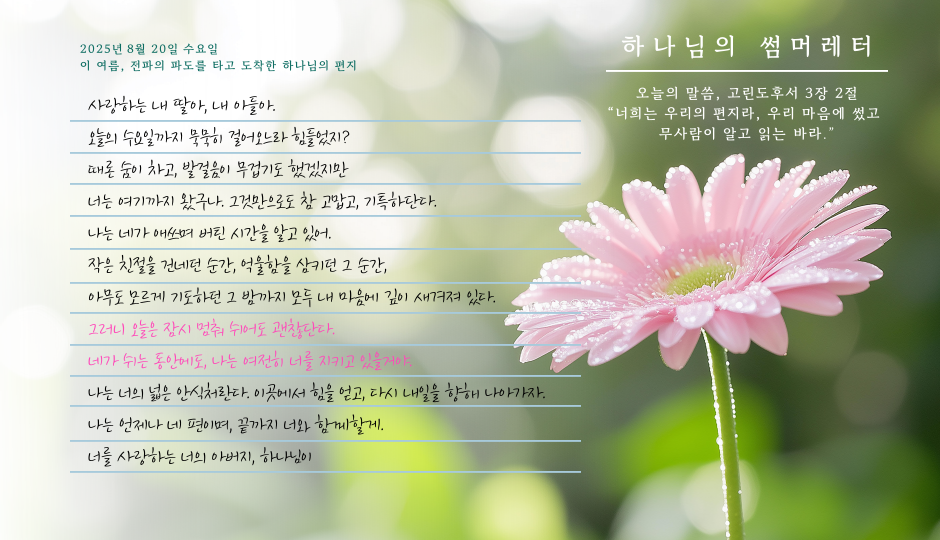[사랑의뜰안] 8월 20일 수요일, 하나님의 썸머레터