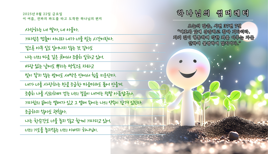 [사랑의뜰안] 8월 22일 금요일, 하나님의 썸머레터