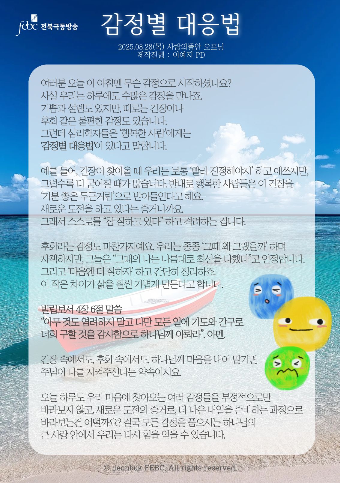 [전북] 25.08.28(목) 사랑의뜰안 오프닝 "감정별 대응법"