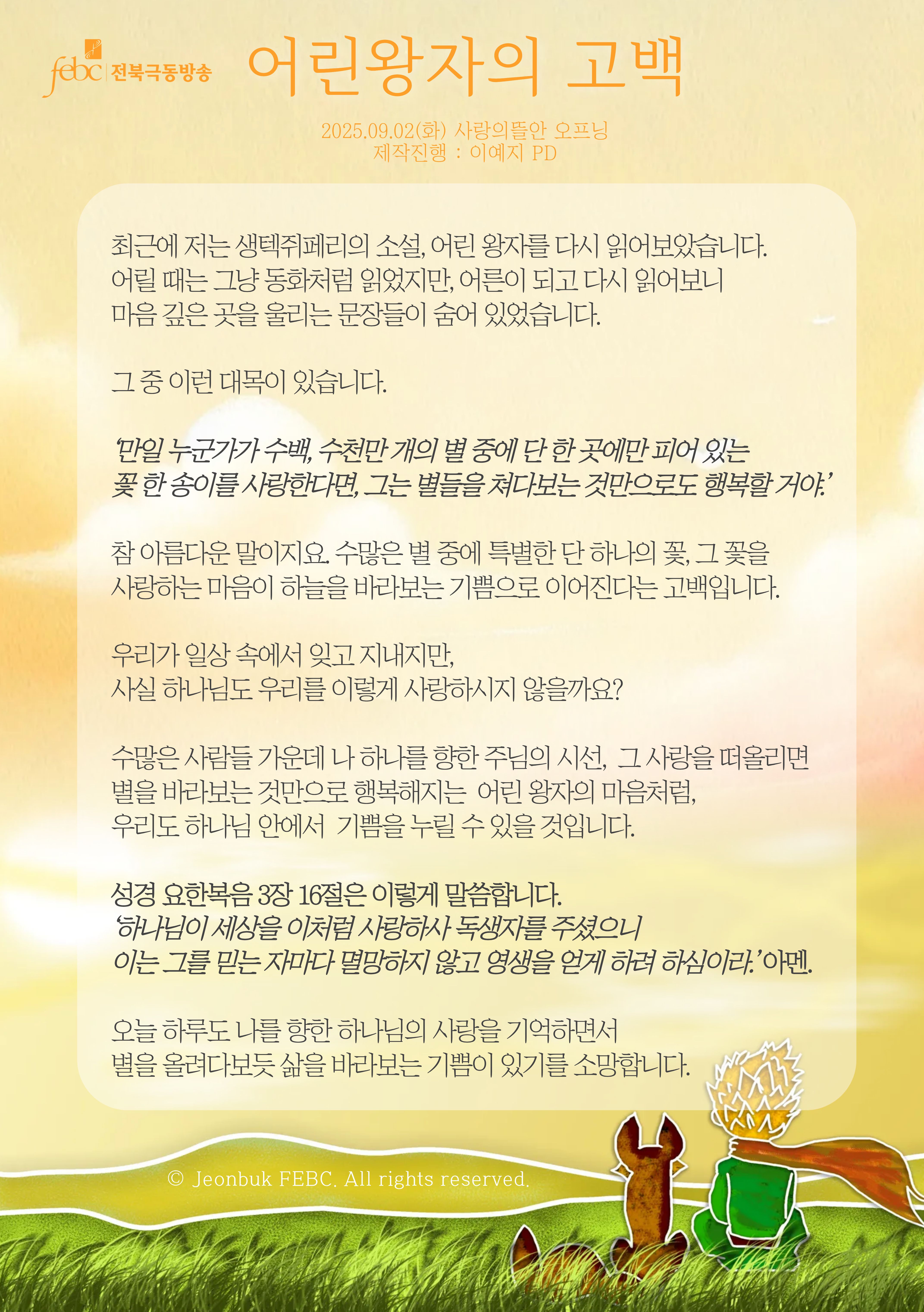 [전북] 25.09.02(화) 사랑의뜰안 오프닝 "어린왕자의 고백"