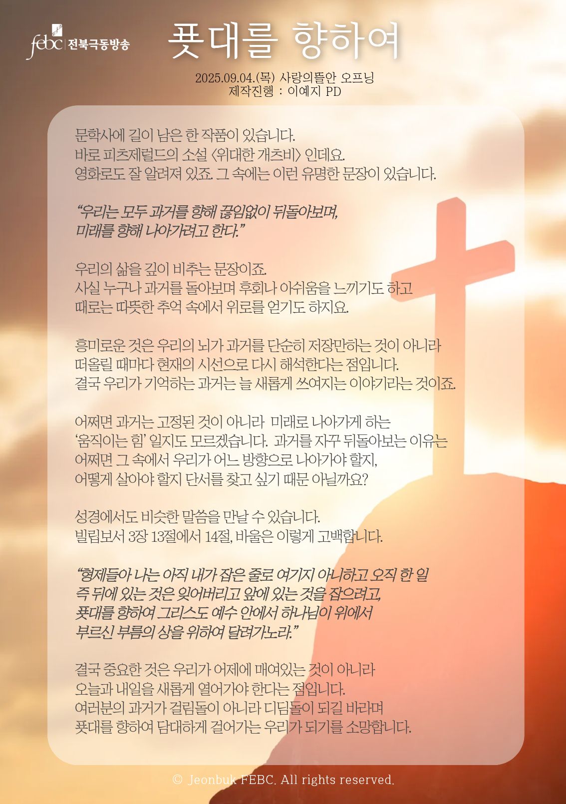 [전북] 25.09.04(목) 사랑의뜰안 오프닝 "푯대를 향하여"