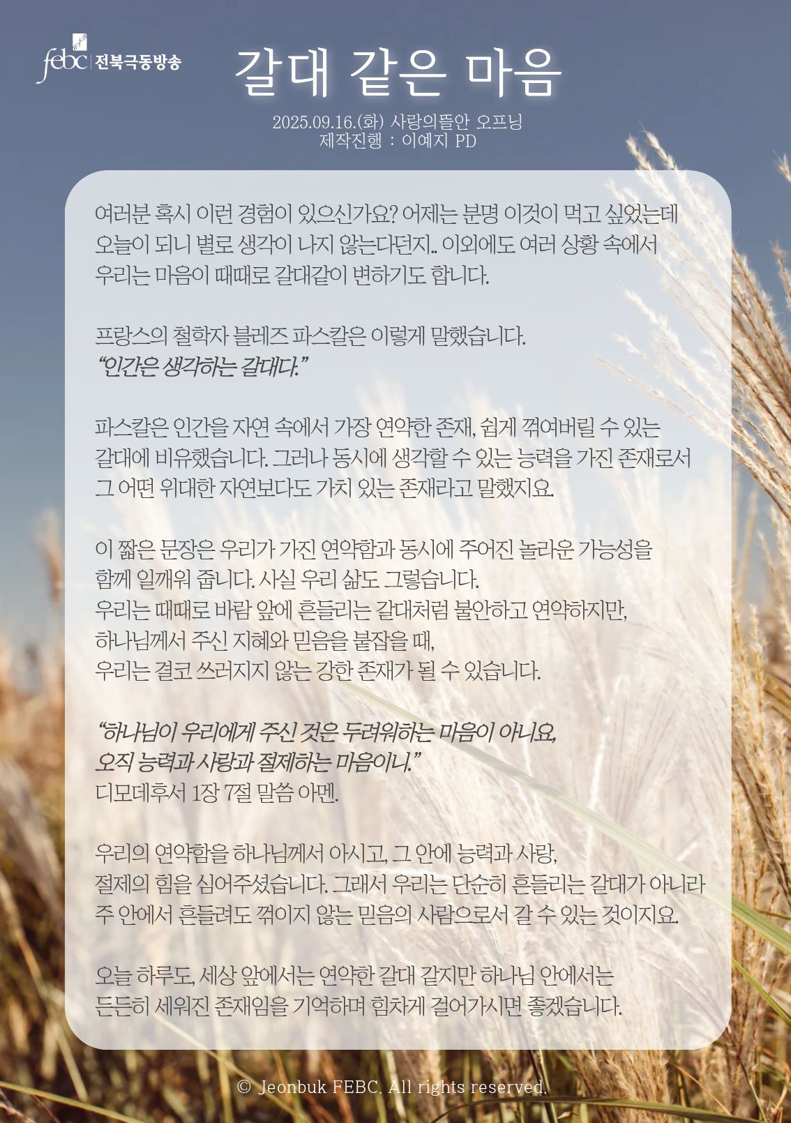 [전북] 25.09.16.(화) 사랑의뜰안 오프닝 "갈대 같은 마음"