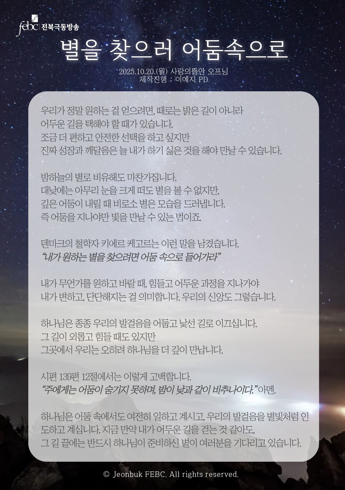 [전북] 25.10.20.(월) 사랑의뜰안 오프닝 "별을 찾으러 어둠속으로"