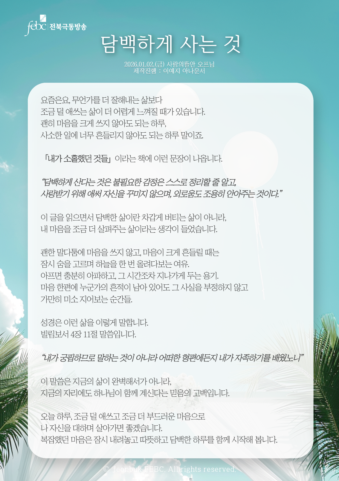 [전북] 26.01.02.(금) 사랑의뜰안 오프닝 "담백하게 사는 것"