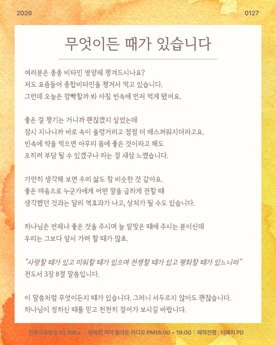 2026년 1월 27일 오프닝 [ 무엇이든 때가 있습니다 ]