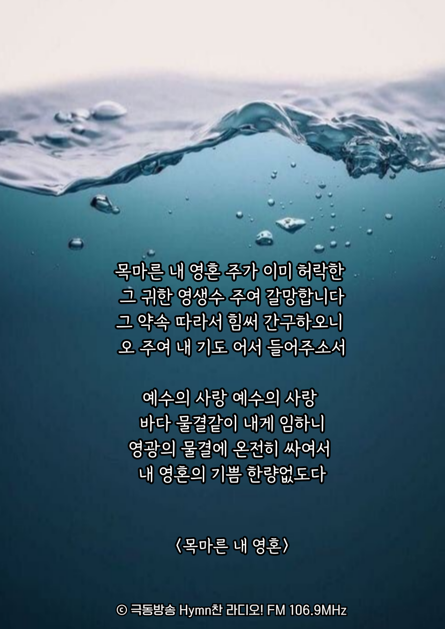 목마른 내 영혼 주가 이미 허락한 그 귀한 영생수 주여 갈망합니다
