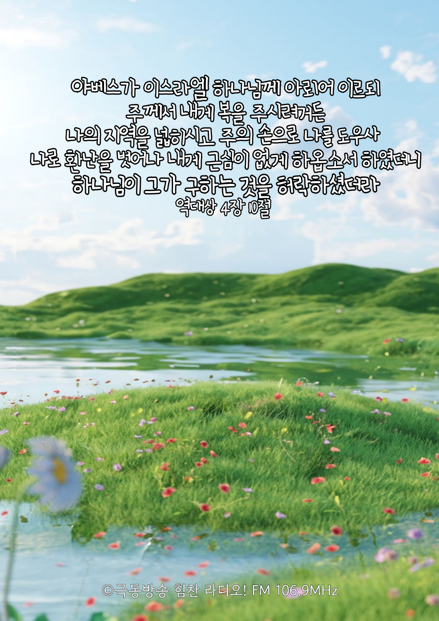 나의 지역을 넓히시고 주의 손으로 나를 도우사