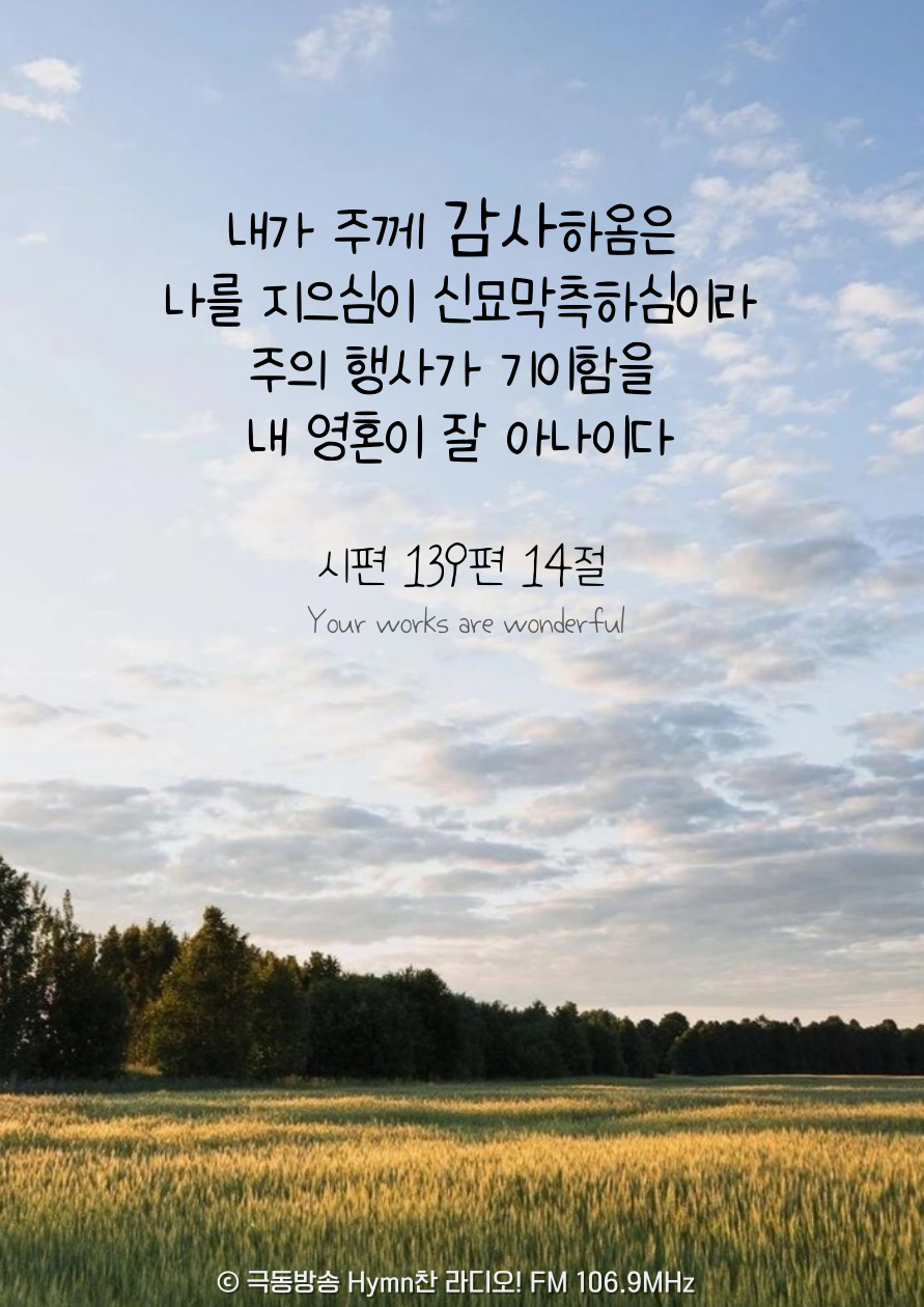 내가 주께 감사하옴은 나를 지으심이 신묘막측하심이라